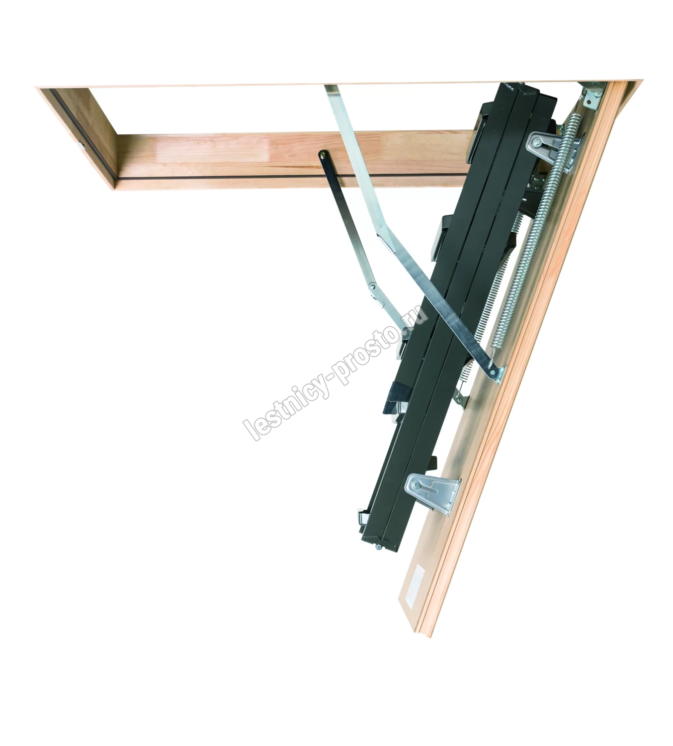 Установленные в лестнице угловые петли-шарниры нового образца придают ей высокую прочность и надежность, а также предохраняют короб от возможной деформации. Основное преимущество чердачной складной металлической лестницы LMS сводится к ее небольшим габаритам при сохранении высокой функциональности, прочности, надежности и эстетичности конструкции. Монтировать лестницу очень просто, для этого не придется затрачивать много времени и сил.