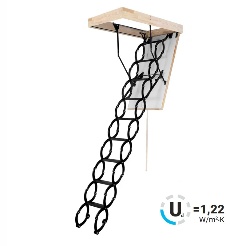 Модель лестницы MAXI EI45 идеально подходит для установки в помещениях подверженных возгоранию, её противопожарные свойства позволят эффективно изолировать помещение, в котором возник пожар, от чердака, тем самым предотвращая дальнейшее распространение огня. Лестница имеет в комплекте нескользящие насадки на ножки, которые идеально прилегают к полу, предотвращают появление царапин и придают лестнице эстетичный вид после ее резки (подгонки по высоте).