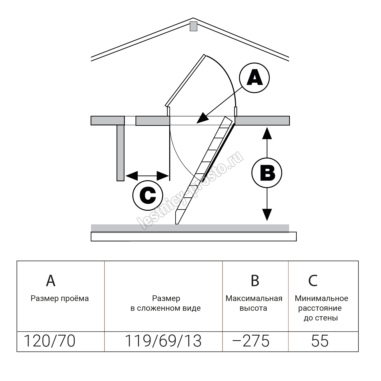 Чердачная складная лестница MINKA EUROFIRE PROTECT, 70×120 см, h-275 см