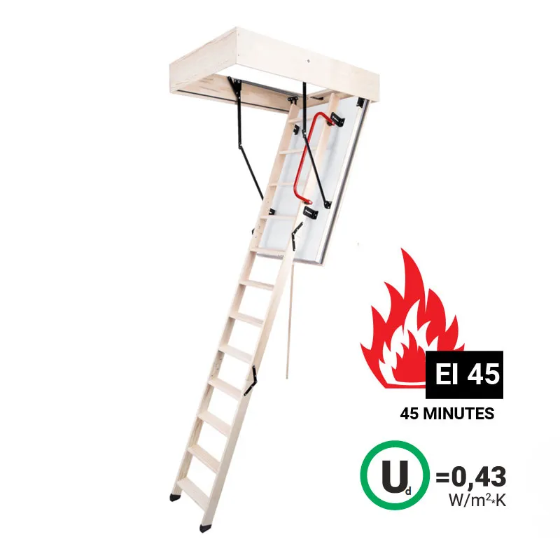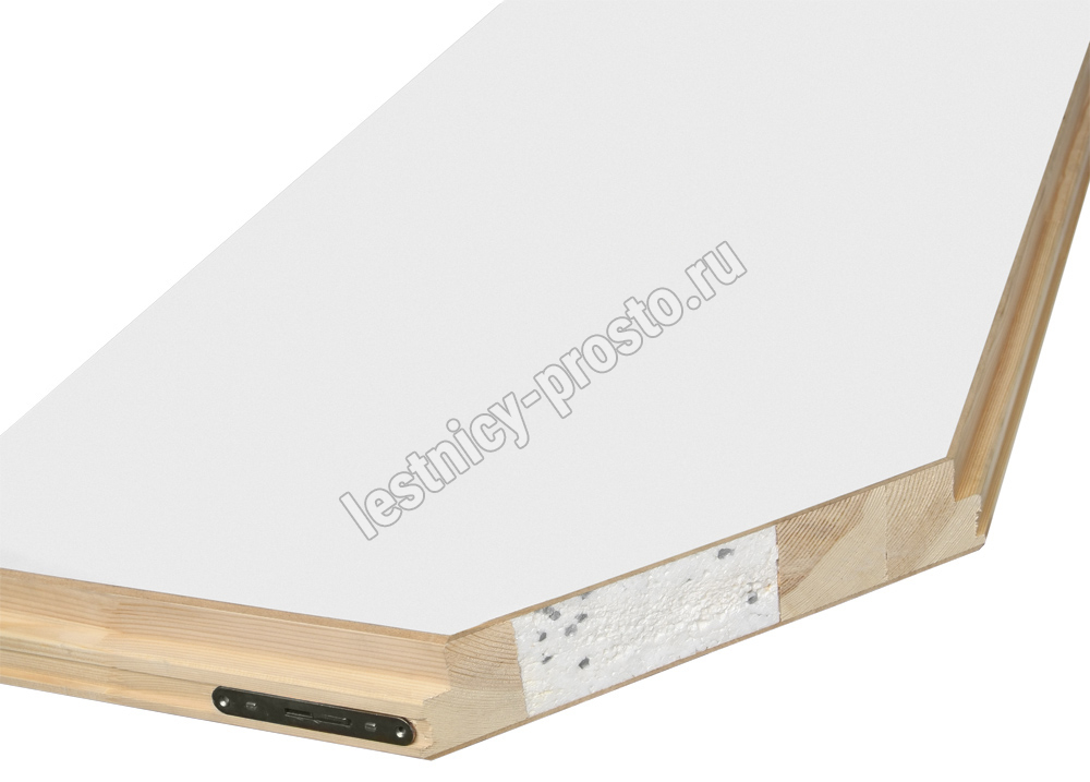 Чердачная лестница LTK Thermo изготовлена из сосны высшего качества и укомплектована утепленной крышкой люка толщиной 66 мм с повышенными теплоизоляционными свойствами. Данную модель лестницы можно использовать даже в домах, где значительна разница температур между этажами, и тем самым ограничить проникновение холода в жилые помещения. Лестница состоит из трех секций, которые компактно складываются и «хранятся в потолке». Крышка люка облицована ДВП белого цвета, что делает ее практически незаметной при установке в светлом или белом потолке. Для большего удобства и безопасности эксплуатации лестница Thermo оснащена боковым металлическим поручнем, а пластиковые наконечники предохраняют поверхность пола от повреждения и увеличивают устойчивость конструкции