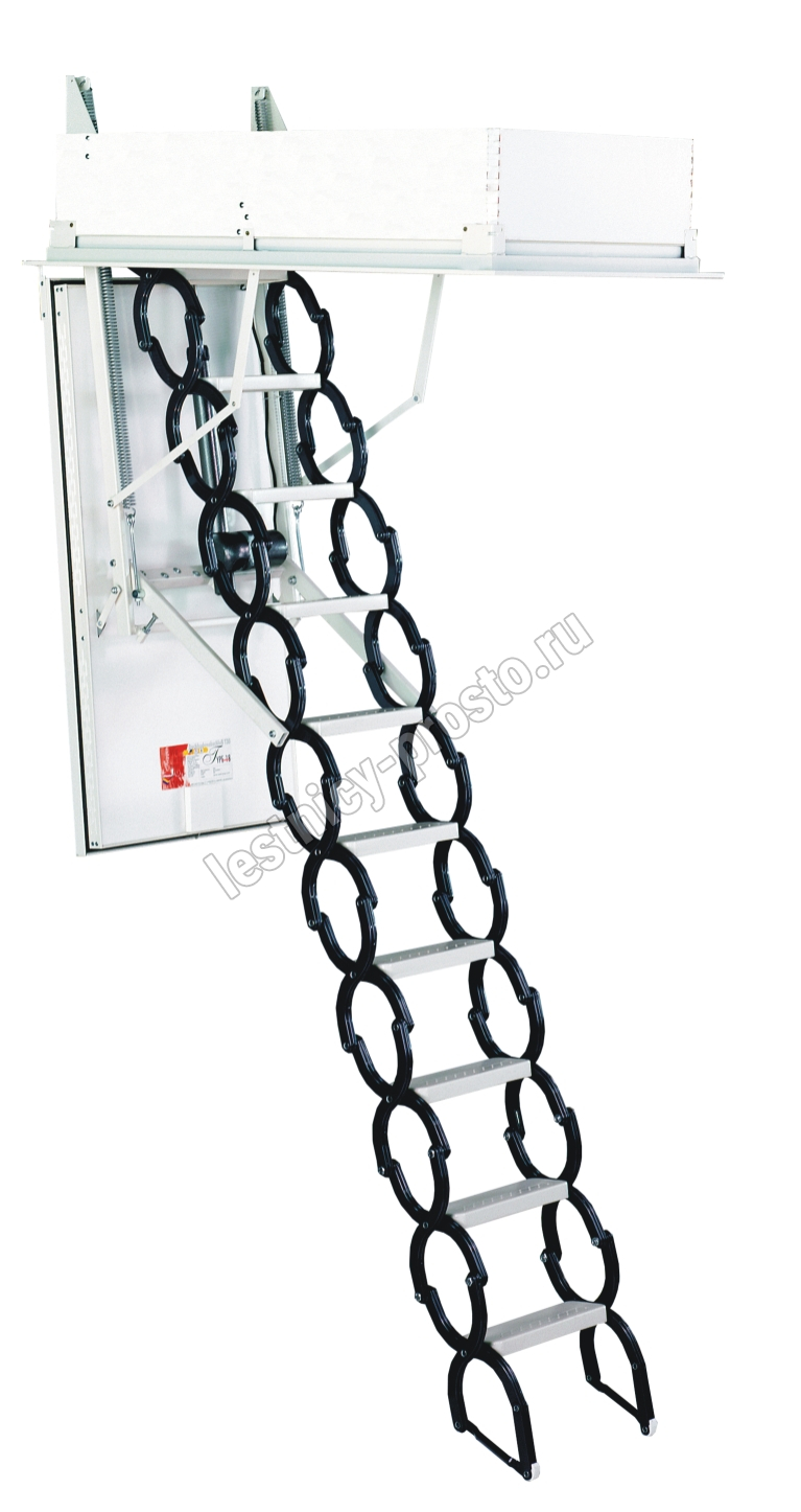 Электрическая лестница раскладывается и собирается всего за несколько секунд с помощью пульта ДУ. Механизм функционирует от обычной розетки, а специальное защитное покрытие обеспечит огнестойкость конструкции до 30 минут.
