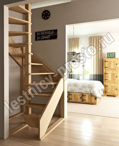 Деревянная межэтажная лестница ЛЕС-1,2ВУ, Лиственница