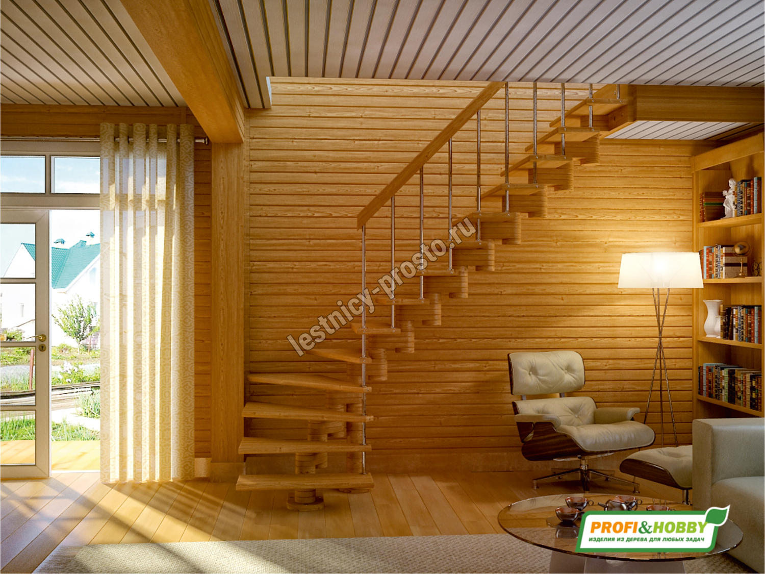Лестница из лиственницы К-008М