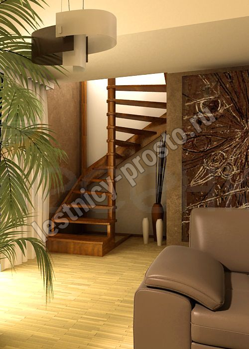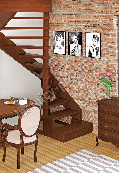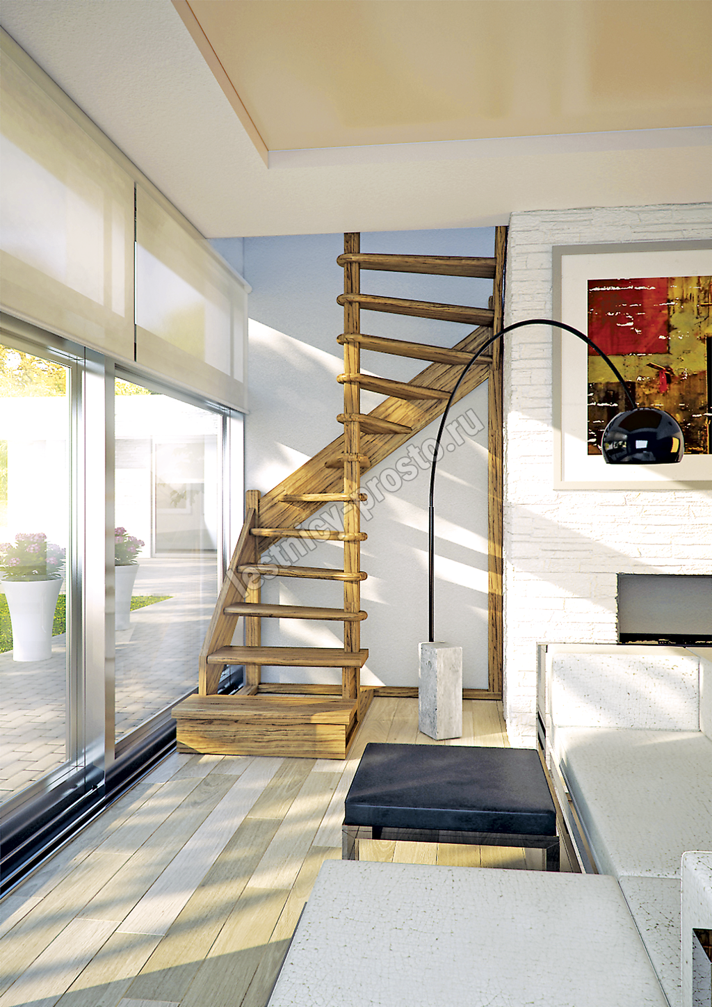 Деревянная межэтажная лестница ЛЕС-01 2340-2540 проем 1630-900, Лиственница