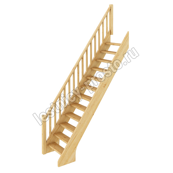 Традиционная лестница, простая в сборке. В процессе установки этой универсальной модели, ограждение можно смонтировать с необходимой стороны (слева или справа).