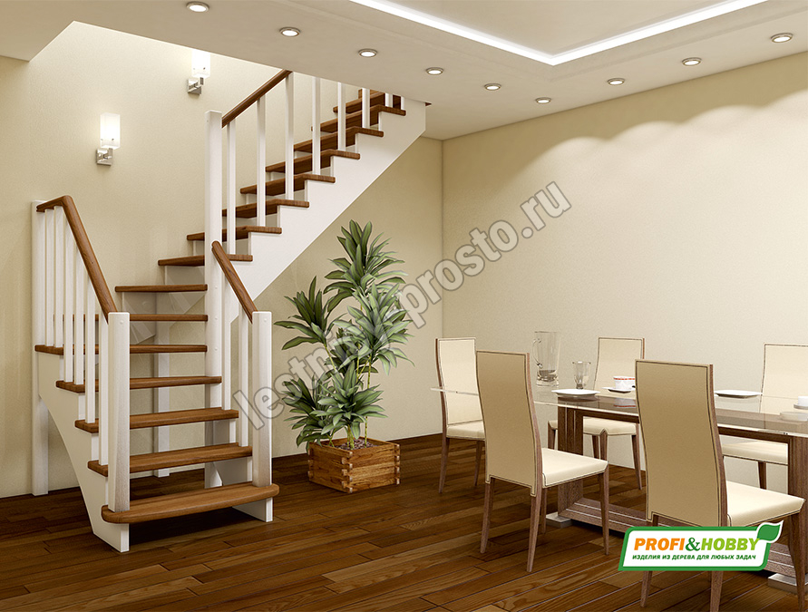 Базовый комплект включает в себя деревянные элементы лестницы и ограждения ;без какого-либо покрытия.