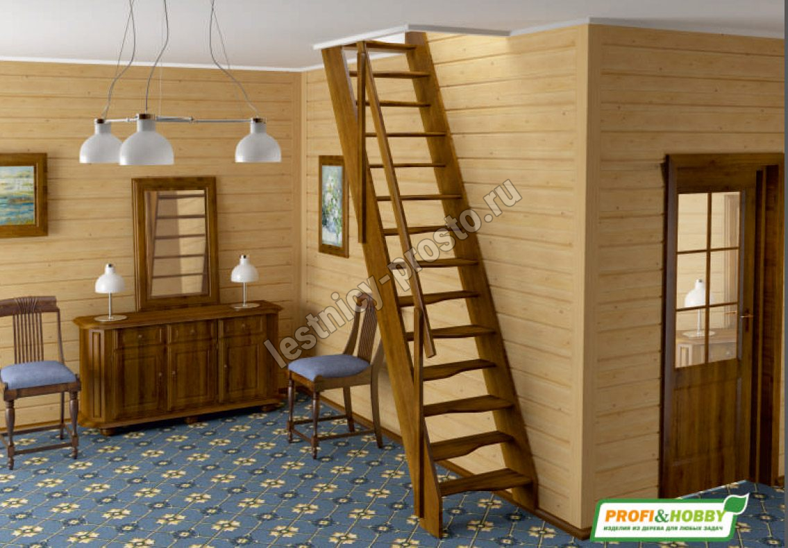 Ступени и поручень лестницы изготовлены из дуба, остальные элементы из сосны.