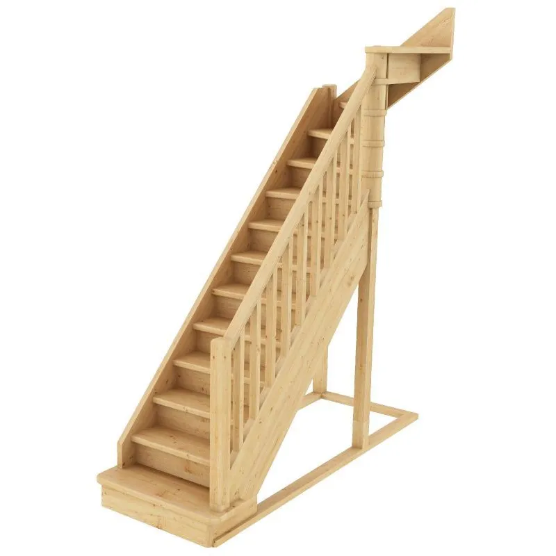 Ступени и поручень лестницы изготовлены из дуба, остальные элементы из сосны.