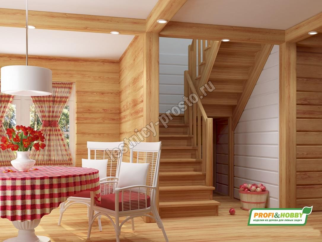 Базовый комплект включает в себя деревянные элементы лестницы и ограждения без какого-либо покрытия.