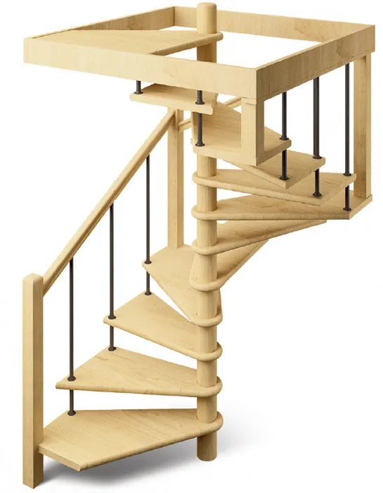 Базовый комплект включает в себя деревянные элементы лестницы и ограждения без какого-либо покрытия.