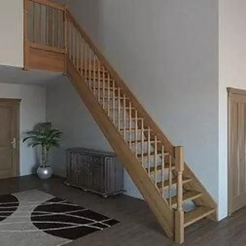 Базовый комплект включает в себя деревянные элементы лестницы с подступёнками и ограждения без какого-либо покрытия.