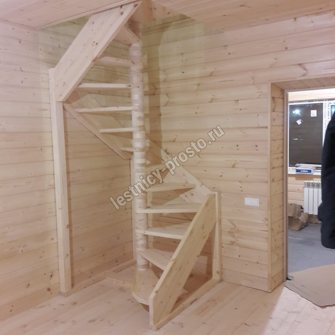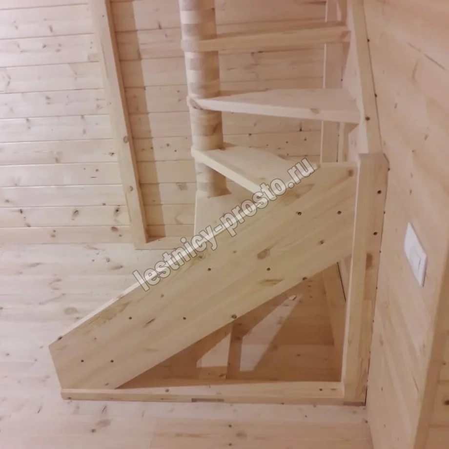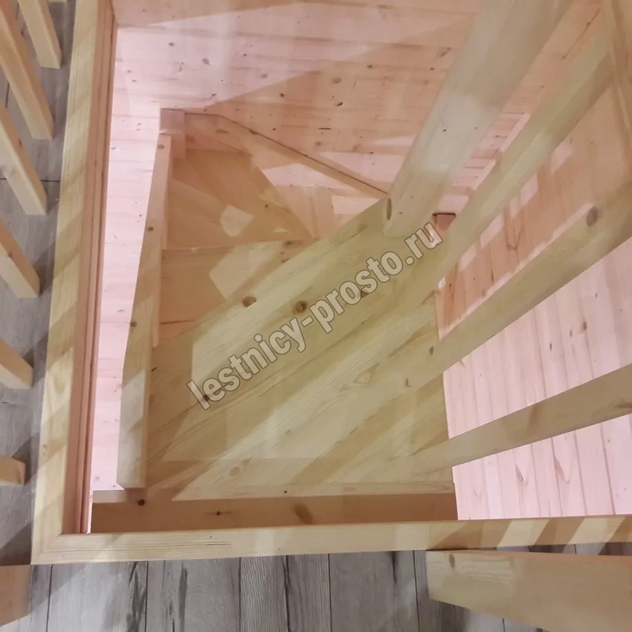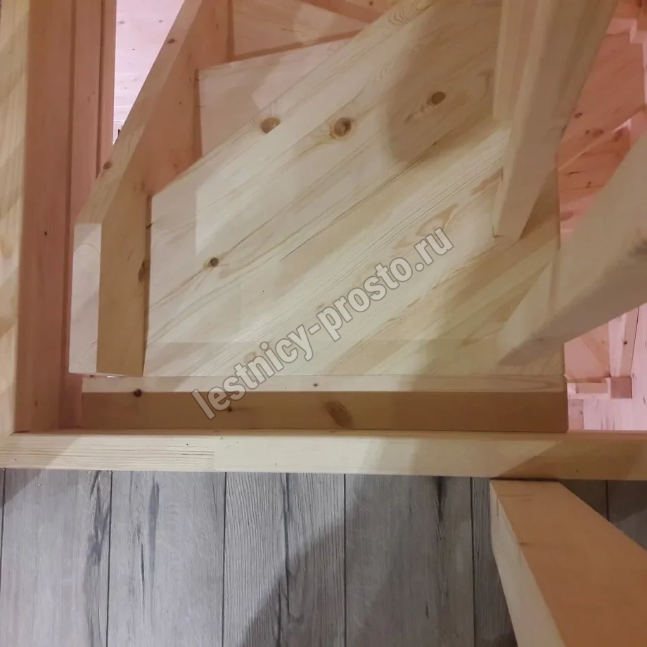 Базовый комплект включает в себя деревянные элементы лестницы и ограждения без какого-либо покрытия.