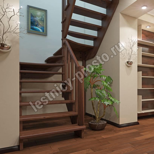 Ограждение лестницы с одной стороны. Базовый комплект включает в себя деревянные элементы лестницы и ограждения без какого-либо покрытия.
