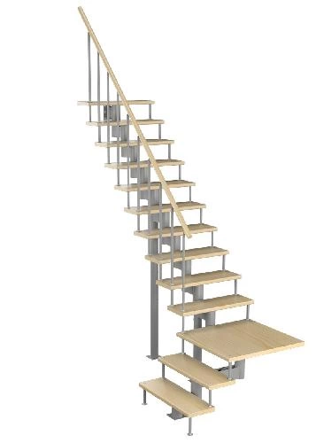 Ступени и поручень лестницы изготовлены из ясеня, остальные элементы из сосны.