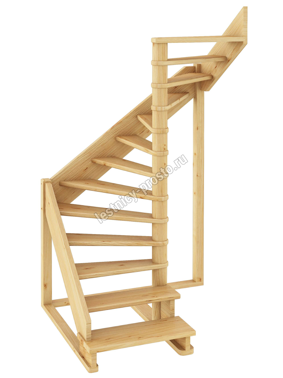 Базовый комплект включает в себя деревянные элементы лестницы без какого-либо покрытия.