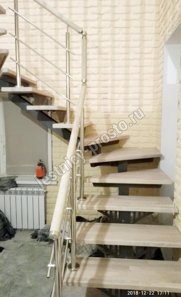 Комплект ограждений для П-образной лестницы PROSTO MONO из 8 ступеней.