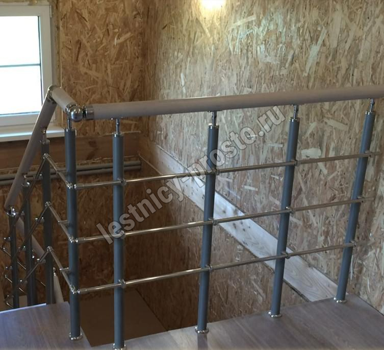 Комплект ограждений для П-образной лестницы PROSTO MONO из 9 ступеней.