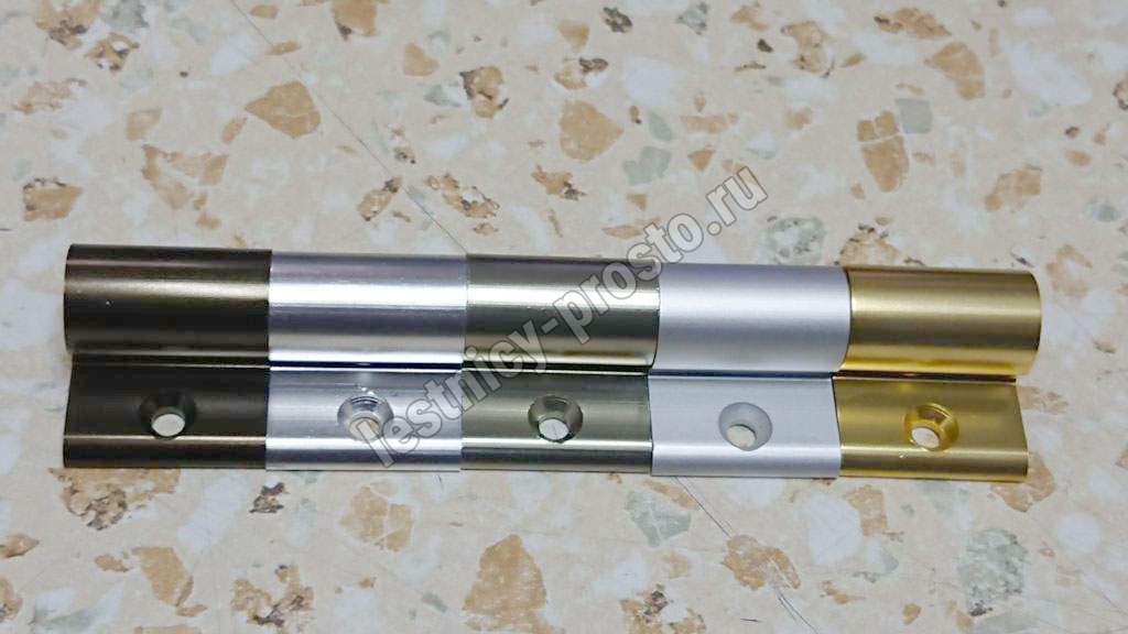 Ковродержатель комплектуется двумя держателями из алюминия цвета бронза, а также алюминиевой трубкой цвета бронза, длиной от 136 до 160 см.