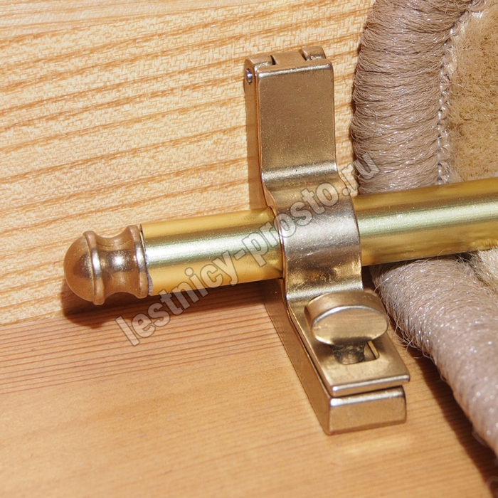 Ковродержатель комплектуется двумя держателями и двумя заглушками из латуни цвета золото, а также алюминиевой трубкой цвета золота, длиной от 131 до160 см.