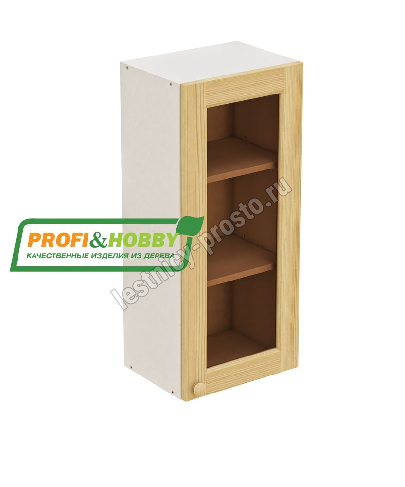 Шкаф навесной 400х340х960 + фасад сосна под стекло бесцветный акриловый лак