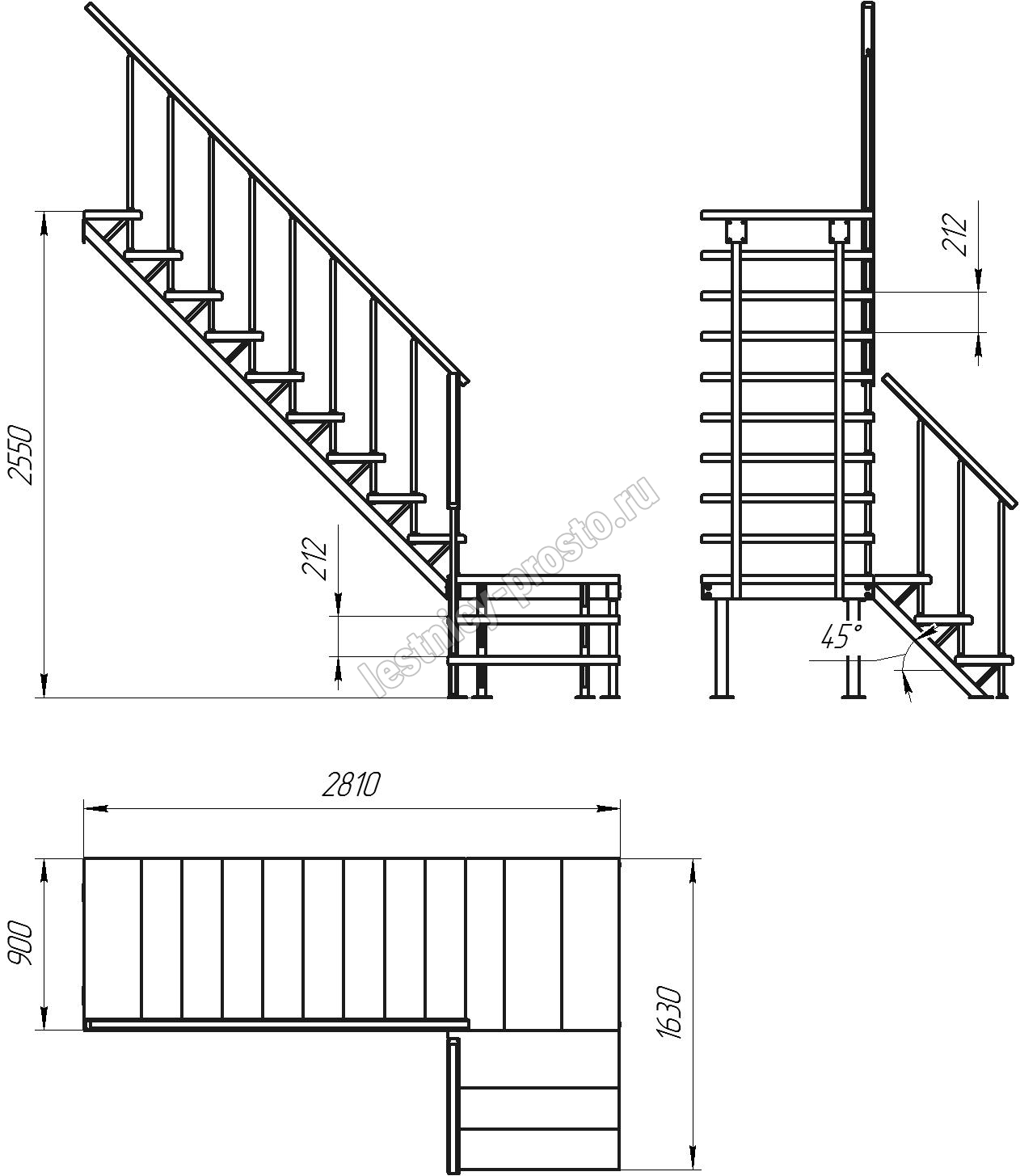 Высота лестницы 2550 мм