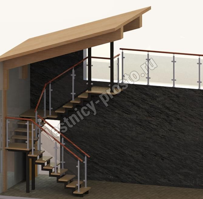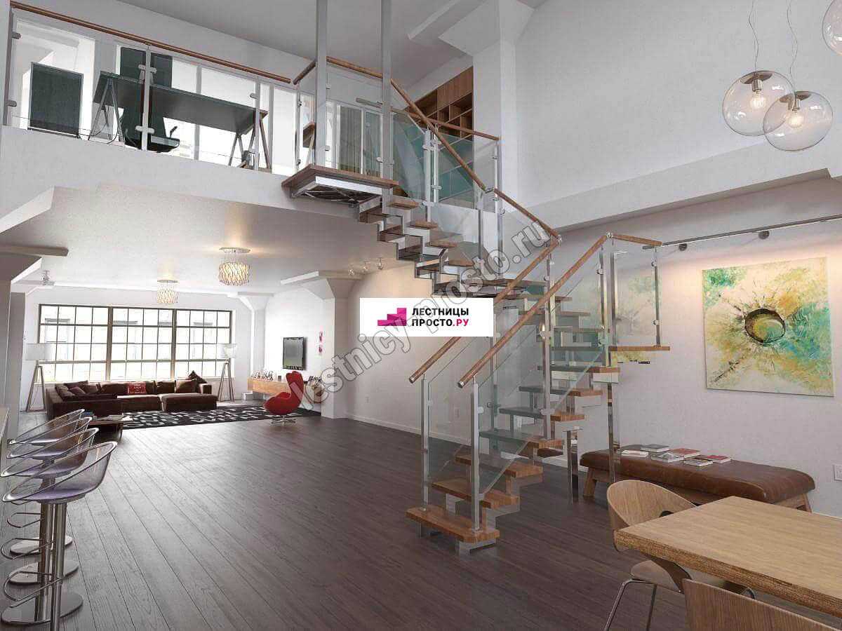 | Лестница Prosto Double 50×100 п-образная, ступени лиственница |