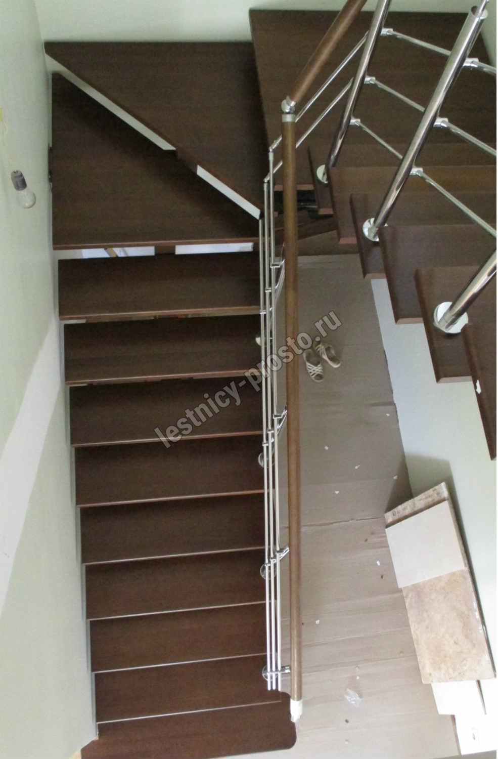 Ступени лестницы изготовлены из лиственницы категории А/В паркетной склейки без какого-либо покрытия. Вы можете заказать у нас предварительную профессиональную покраску деревянных элементов материалами БИОФА в широкий спектр цветов (стоимость зависит от количества ступеней).