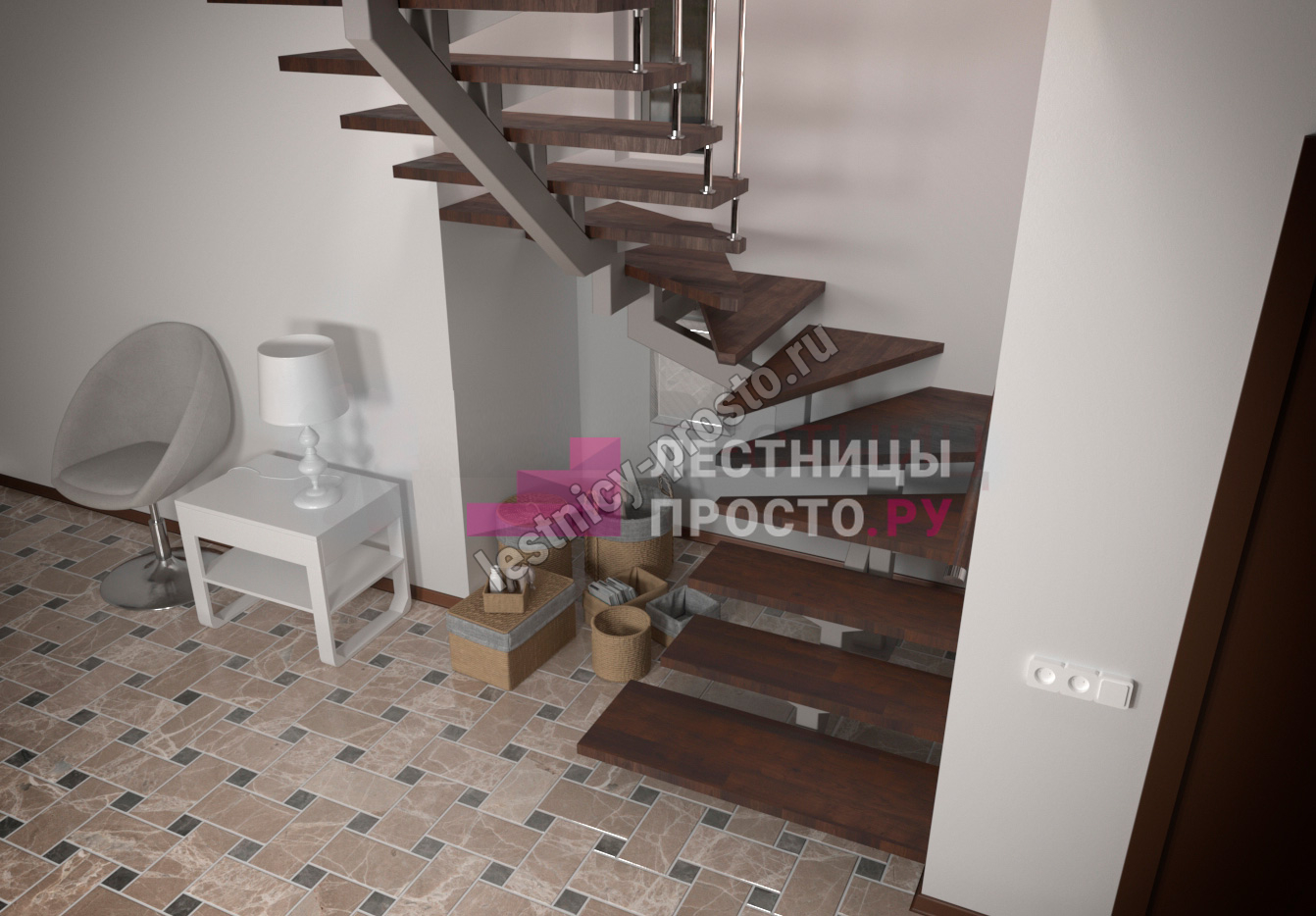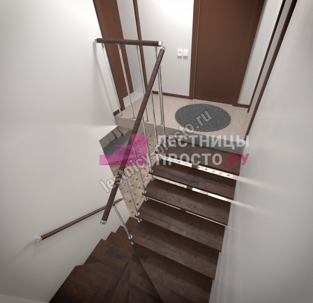 Металлический каркас лестницы PROSTO MONO STEP CLASSIC п-образная забежная с ограждением