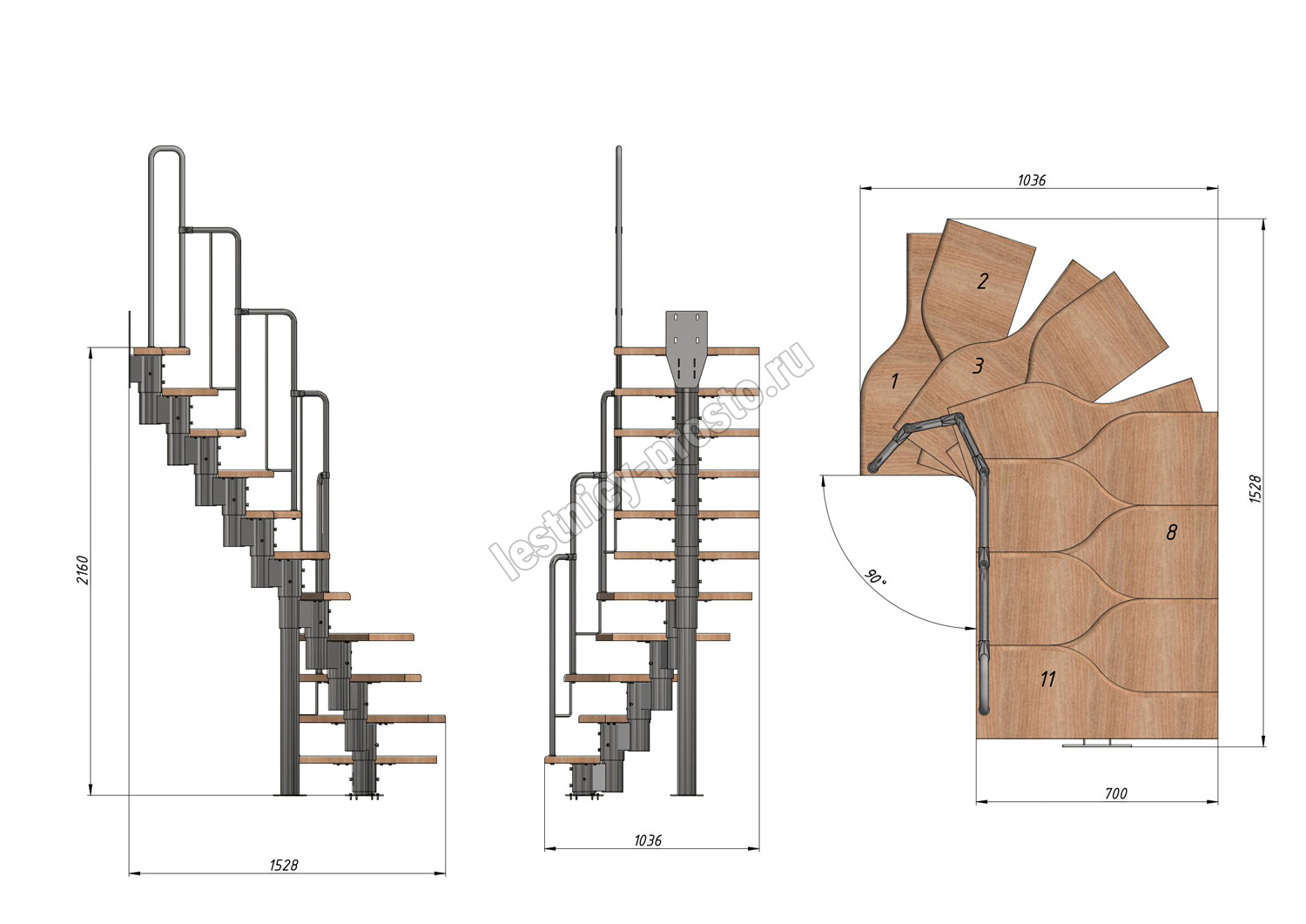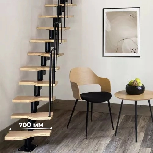 Лестница Prosto Urban Black гусиный шаг 700 мм, h198-288 см (11 ступеней), бук