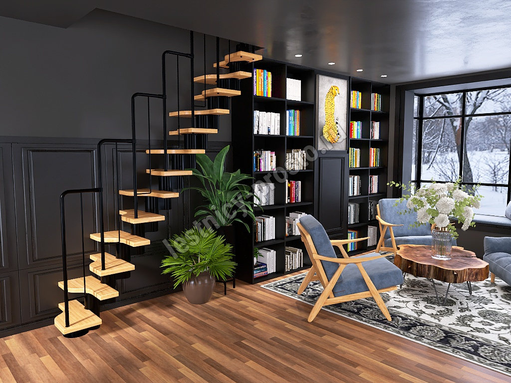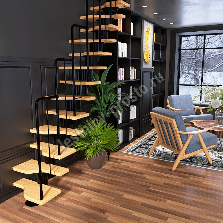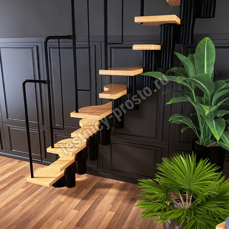 Лестница Prosto Urban Black гусиный шаг 700 мм/Ступени из берёзы мультиплекс