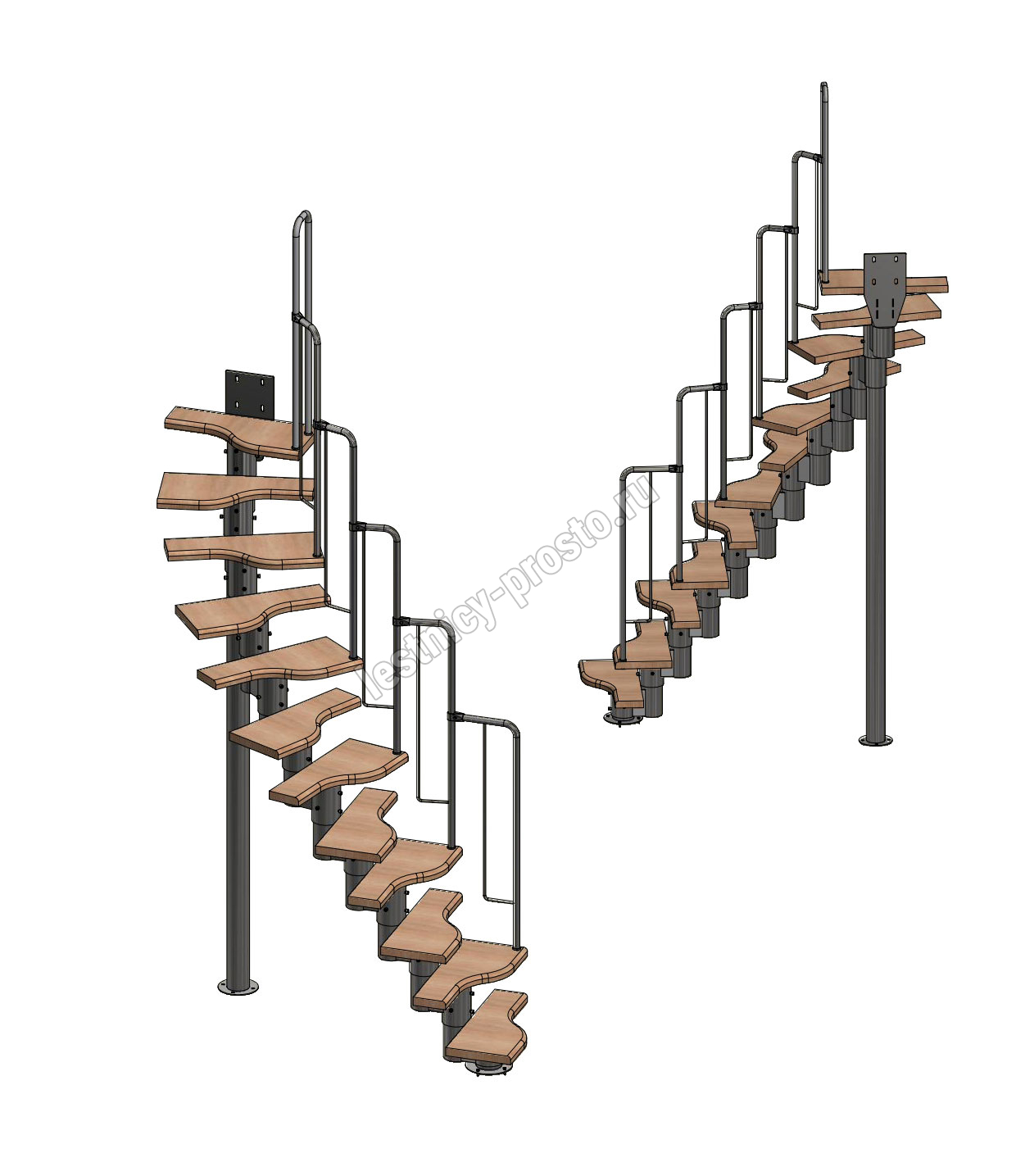 - Регулируемый по высоте в пределах 180-240 мм модуль. Большой диаметр и толщина металла деталей обеспечивают жесткость и прочность конструкции. Регулировка каждого модуля по высоте позволяет легко приспособить лестницу под ваше помещение.