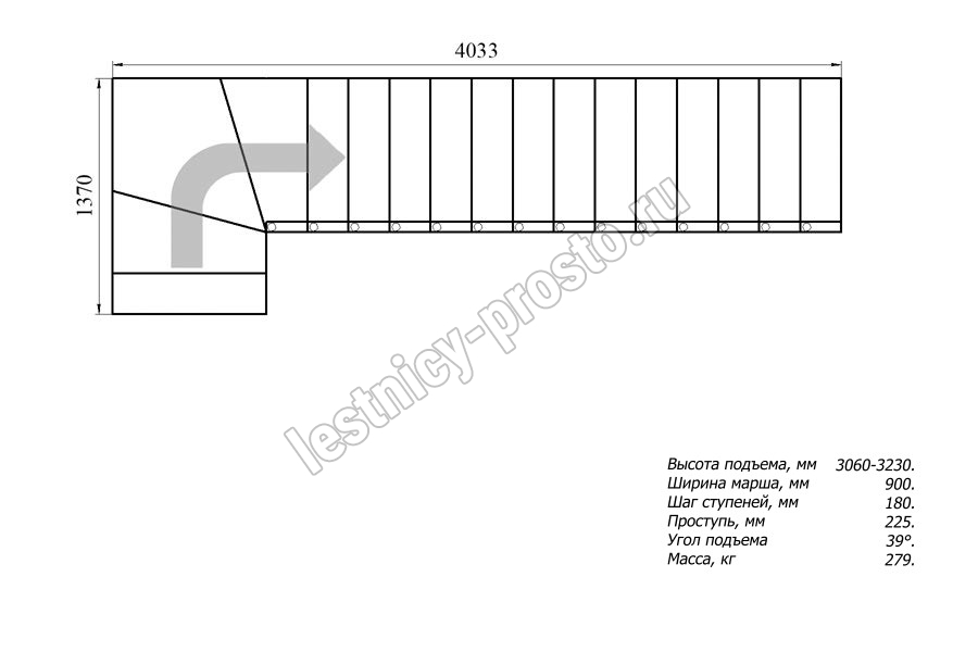 Модульная лестница Фаворит 180 3060-3230, Черный, Лиственница, Нержавеющая сталь