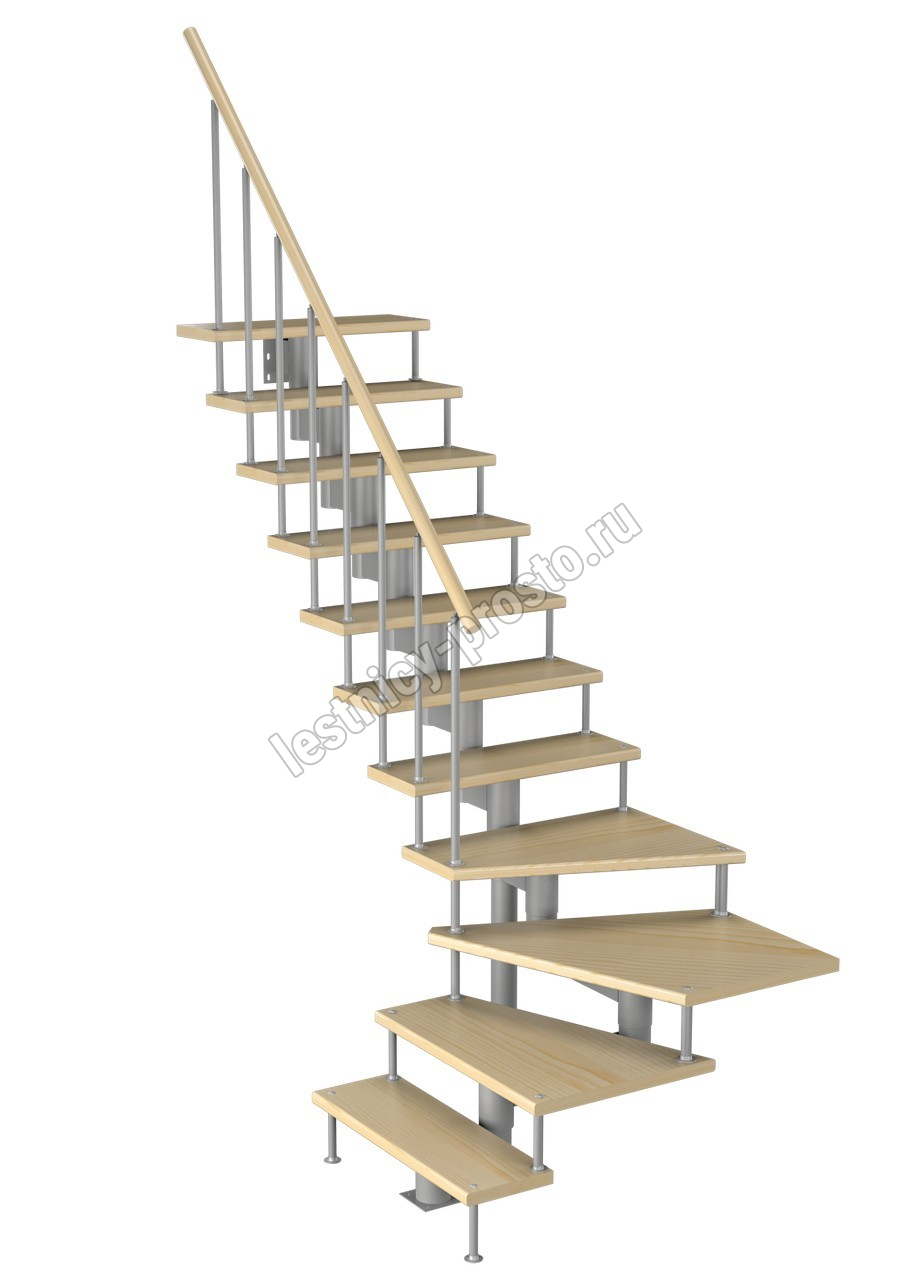 Модульная лестница Фаворит 225 2475-2585, Серый, Сосна, Нержавеющая сталь