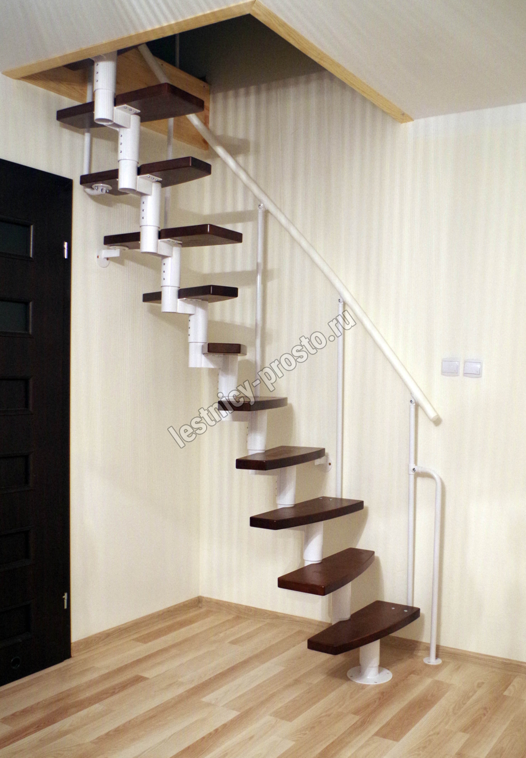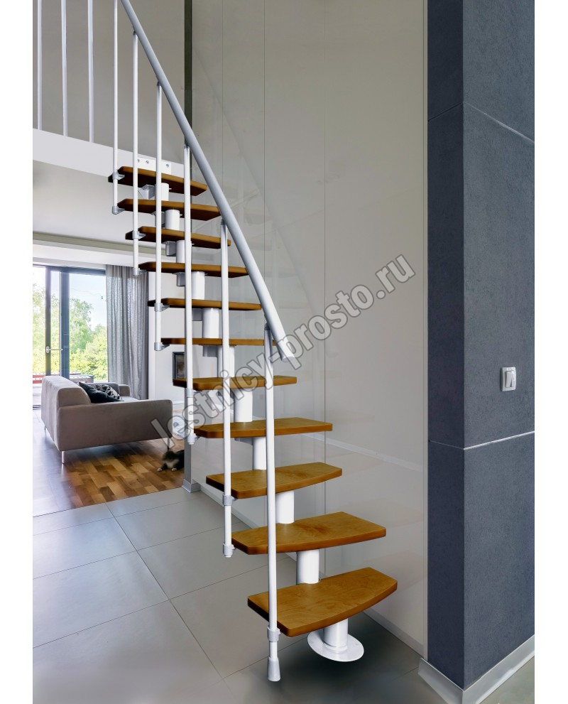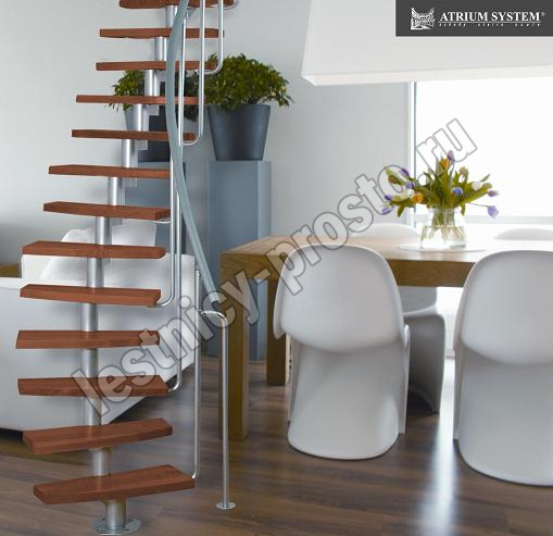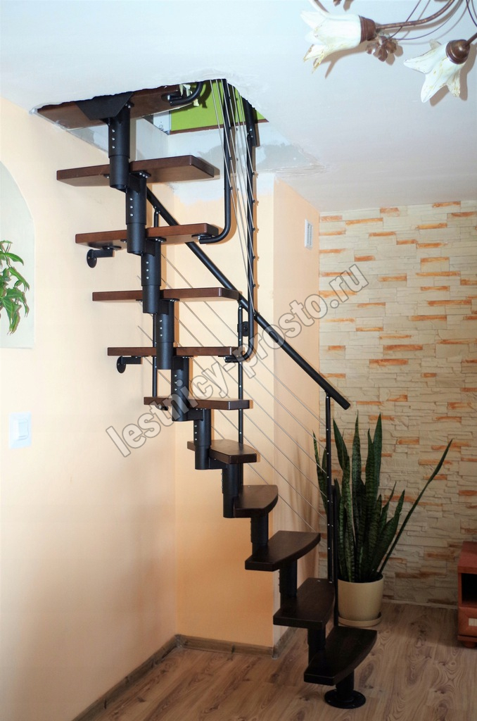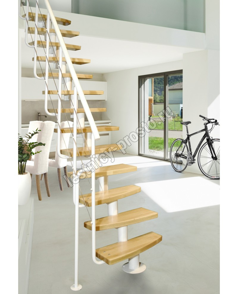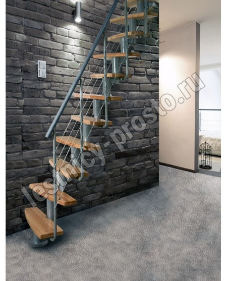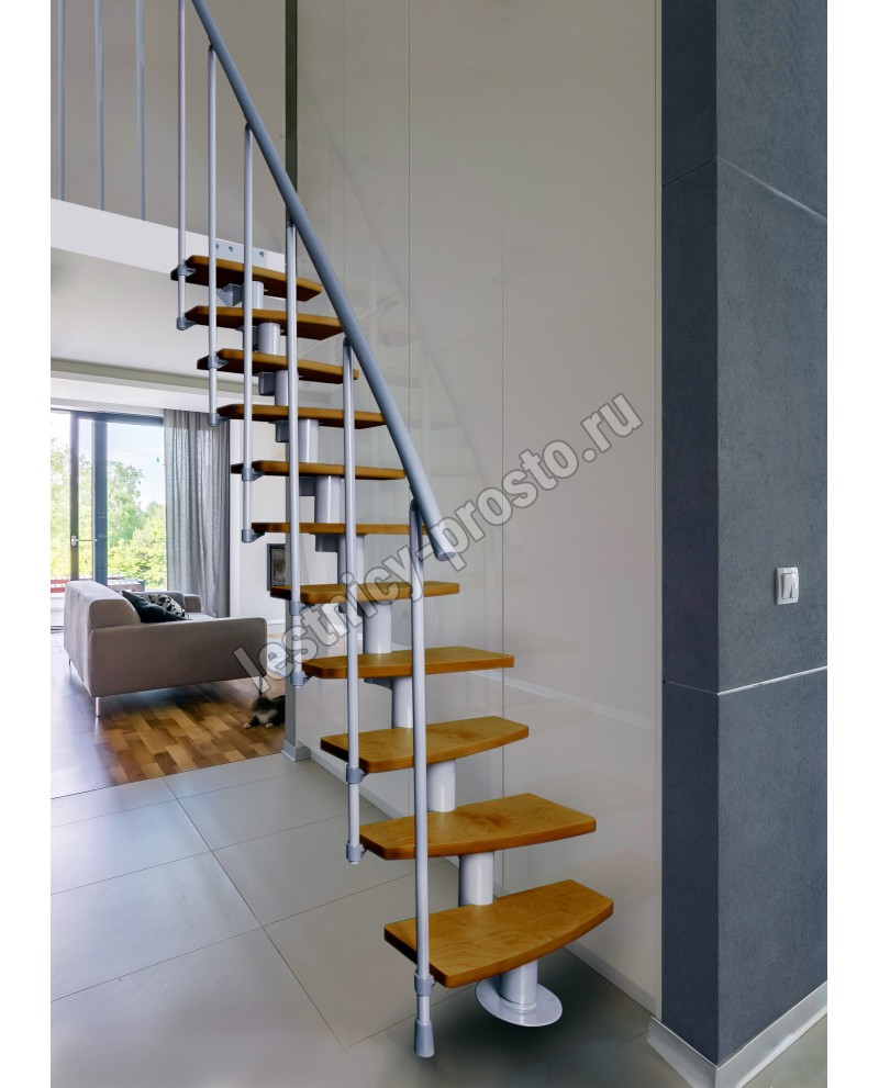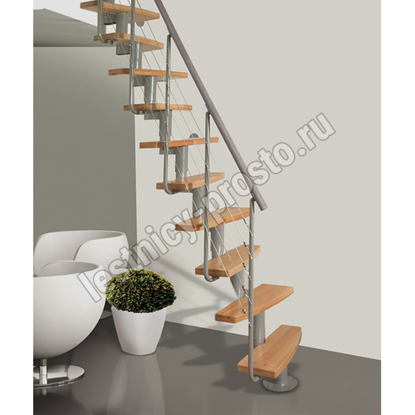 С помощью дополнительных секций(покупаются отдельно) можно увеличить высоту лестницы до 3750 мм. Модульный каркас лестницы позволяет собрать конструкцию, как прямую так и с необходимым небольшим поворотом в нужную сторону, благодаря чему эта модель идеально подходит для помещений с ограниченным пространством, где установка стандартных лестниц невозможна.