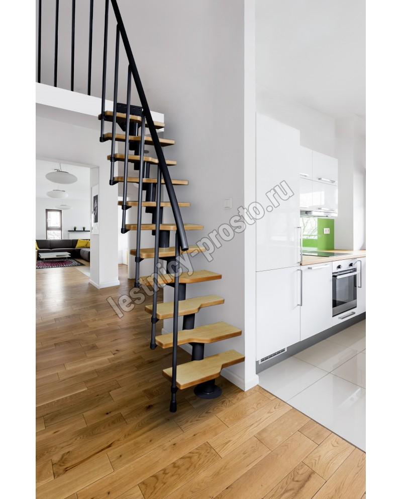 Модульная конструкция позволяет собрать лестницу наилучшим образом подходящую по форме параметрам вашего помещения.