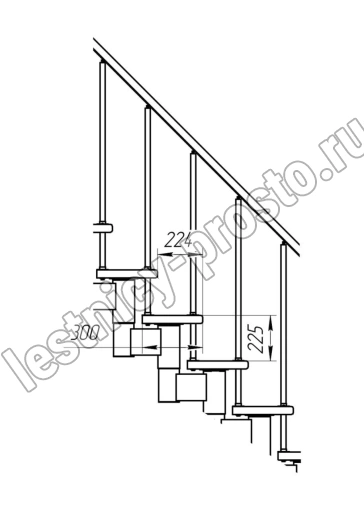 Модульная лестница Спринт 225 2475-2585, Серый, Лиственница, Крашеная