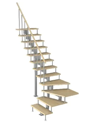 Модульная лестница Стандарт 2025-2115, Серый, Лиственница, Нержавеющая сталь