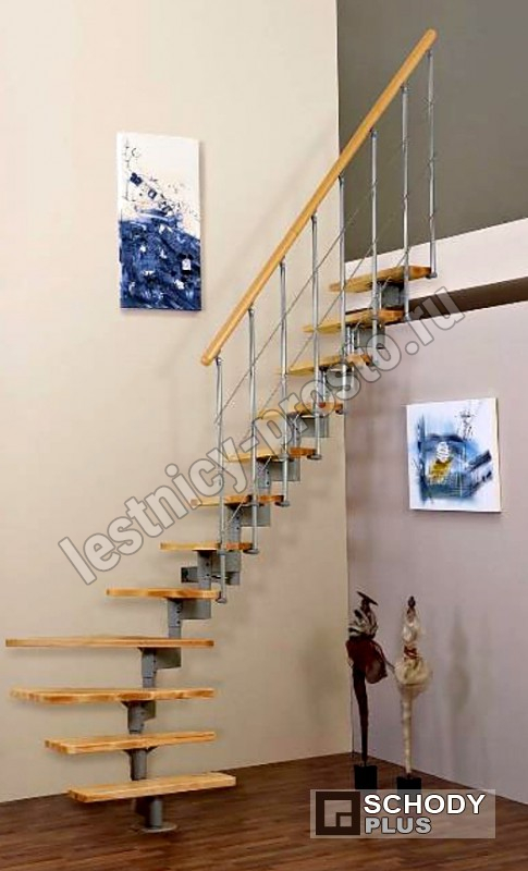Компактная модульная лестница со ступенями из бука.