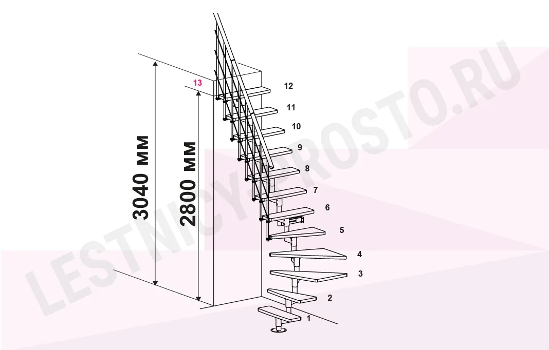Высота лестницы 2240 - 3040 мм