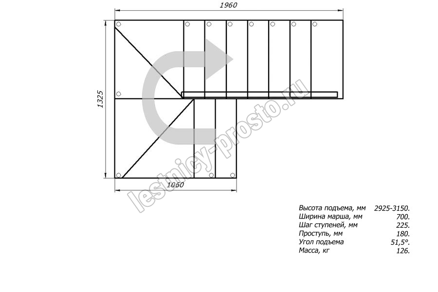 Высота лестницы 2925 - 3150 мм