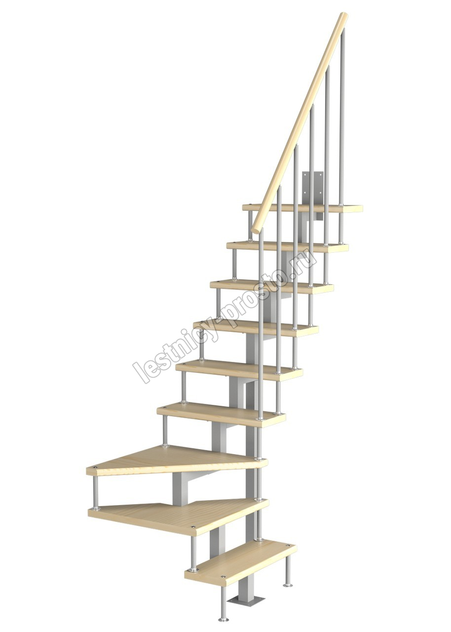 Модульная малогабаритная лестница Компакт 2025-2250, Белый, Сосна, Нержавеющая сталь