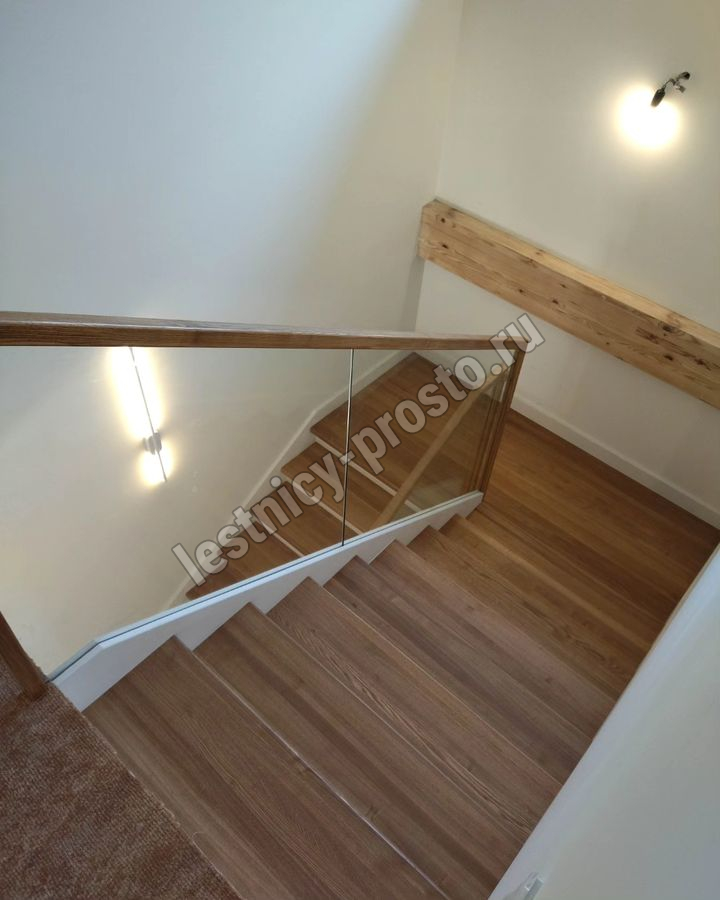 Ступени и поручень выполнены из срощенного дуба категории АВ.