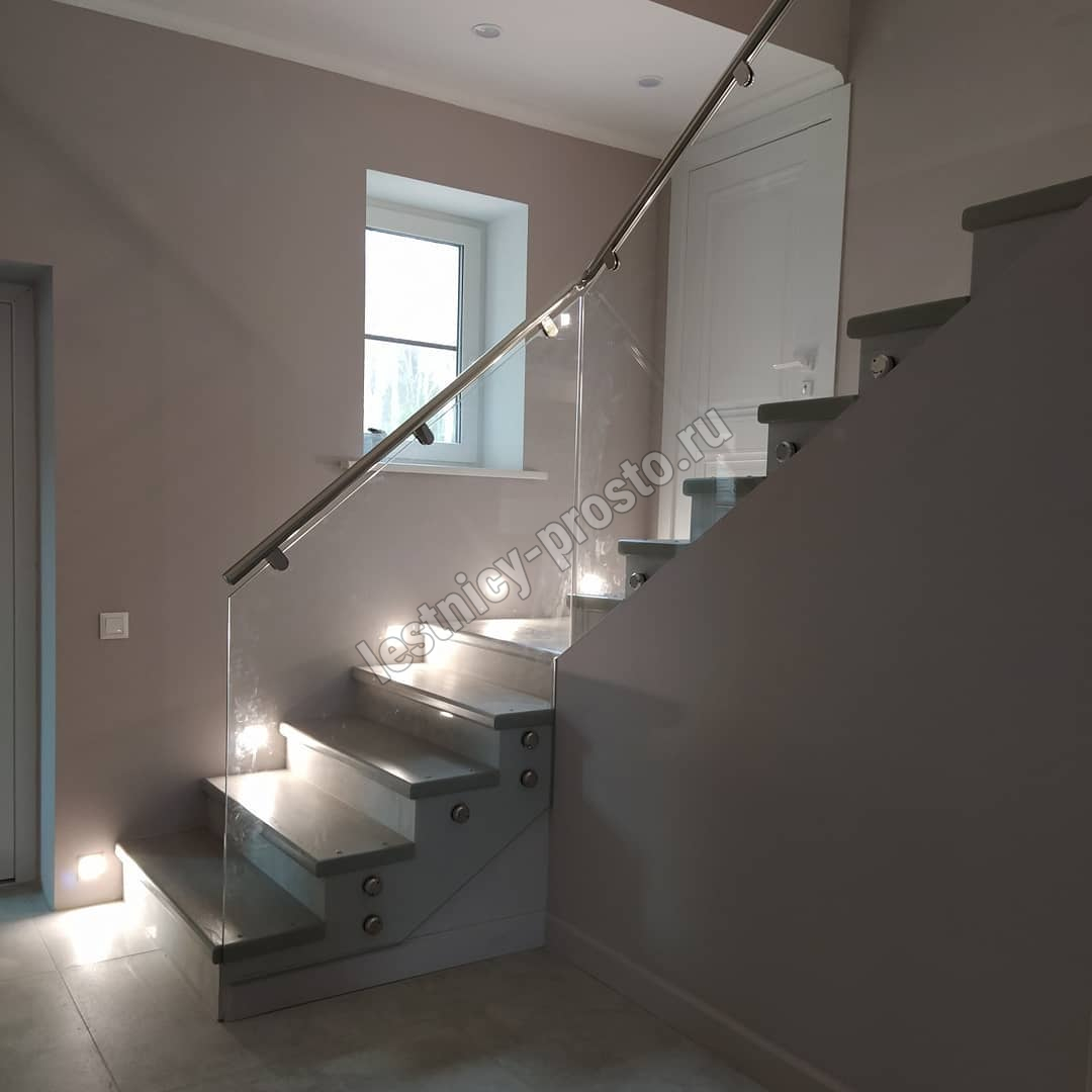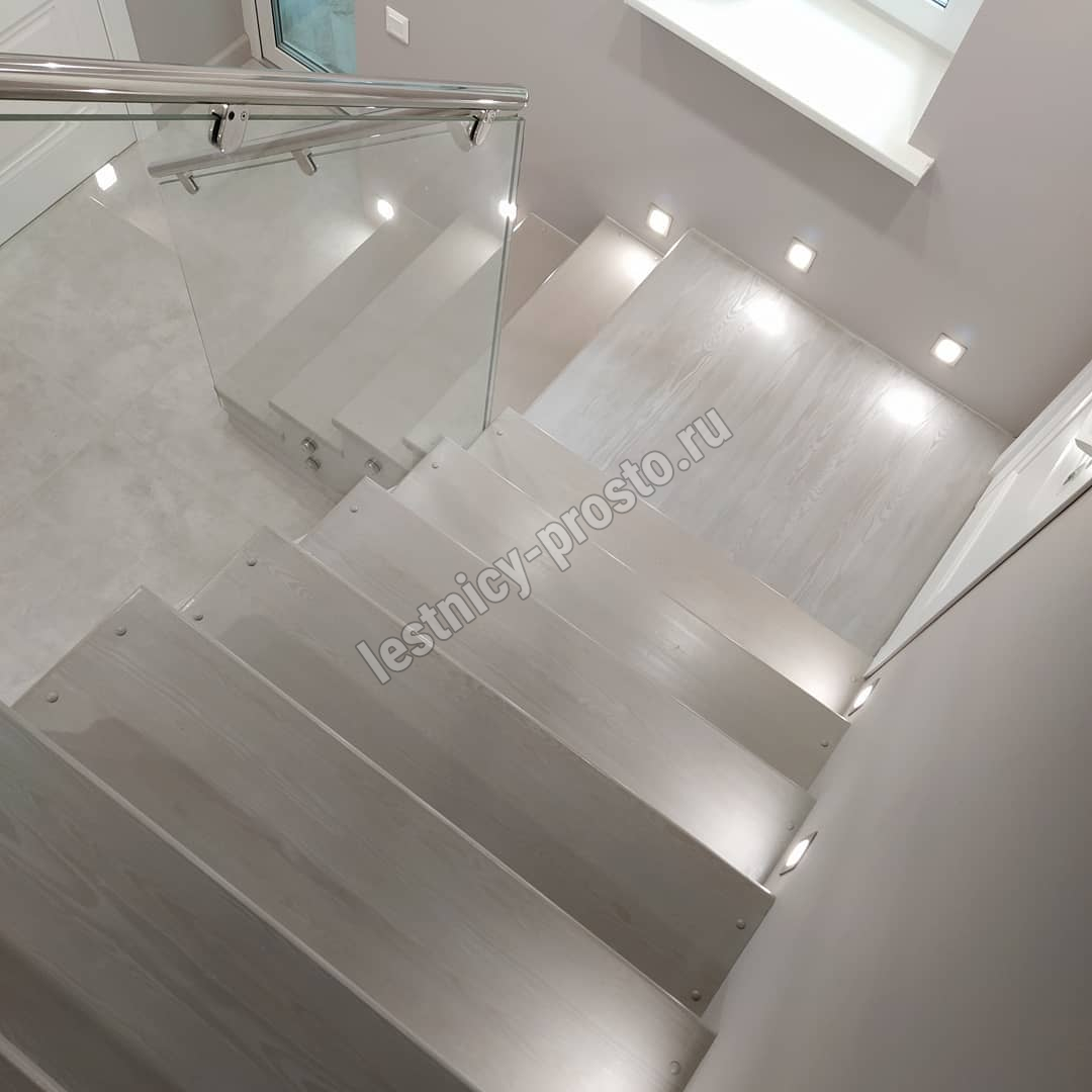 Лестница из стекла/дуба/керамогранита с подстветкой LP-1-53