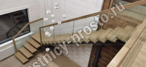 Стеклянная лестница из ясеня LP-2935 с металлическим каркасом
