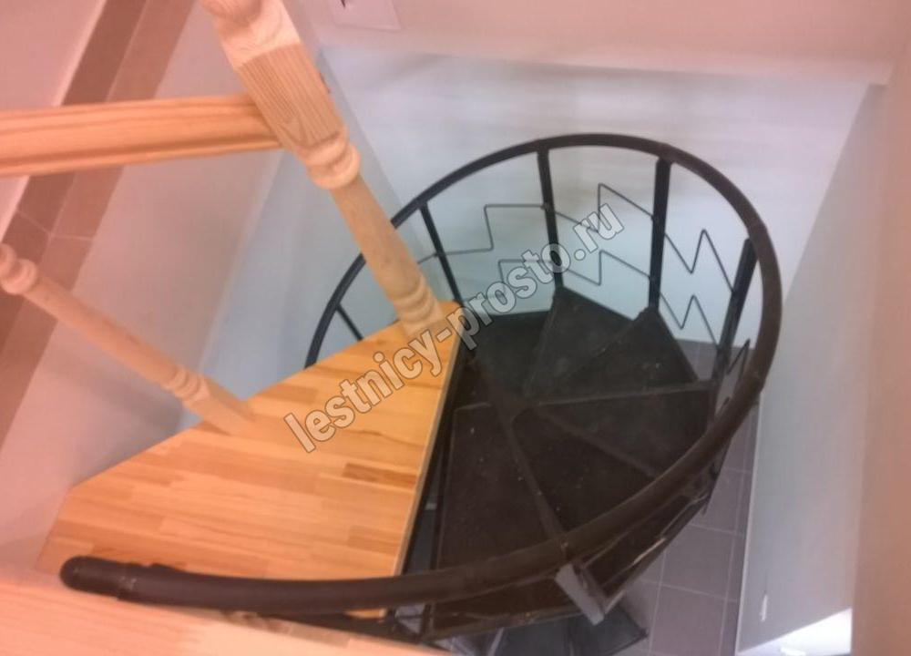 Компактная металлическая винтовая лестница КАСКАД. Ступени лестницы покрыты специальным антискользящим материалом.
