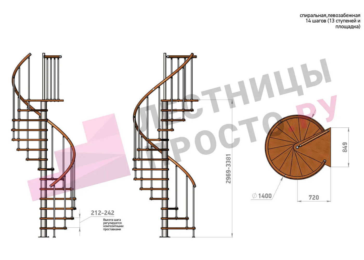 Винтовая лестница Prosto Spiral Black/Высота 3182 - 3623 мм