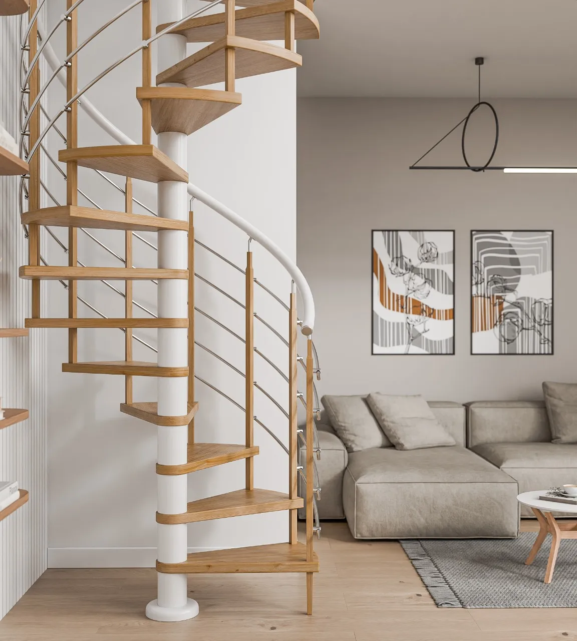 SOLO VERTICAL - это современная винтовая лестница, не требующая много места. Промышленный дизайн лестницы подчеркивают стальные тросы, используемые в балюстраде.
