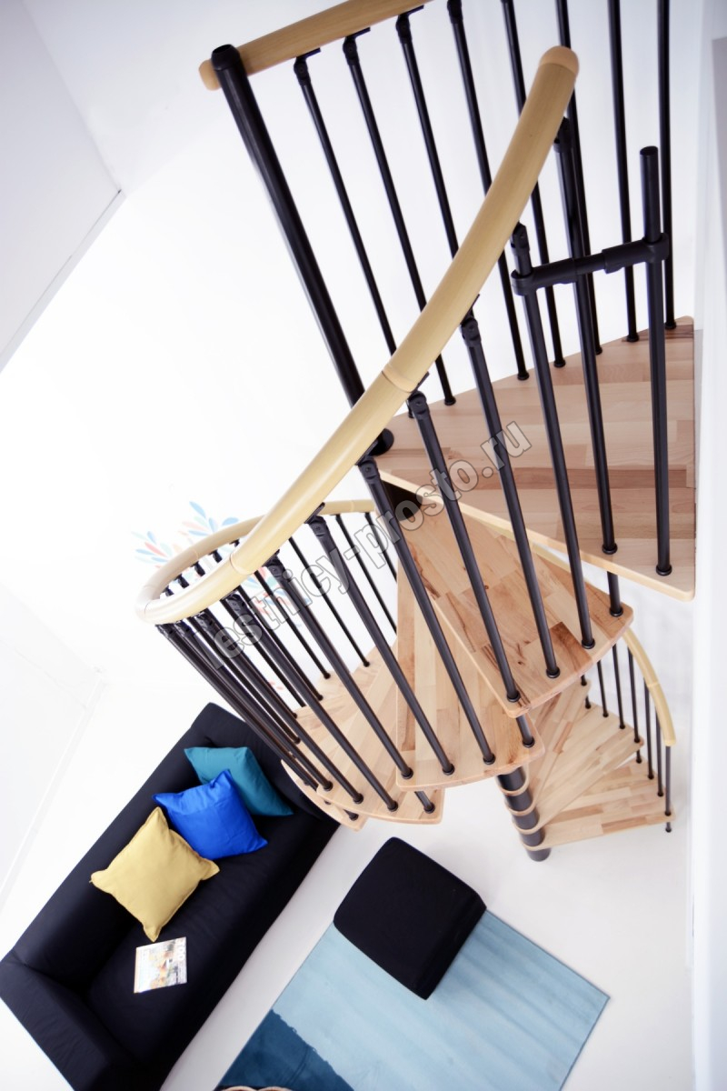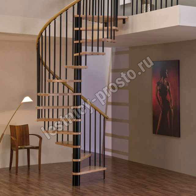 Винтовая лестница SPIRAL WOOD d140 см, чёрная, лакированный дуб