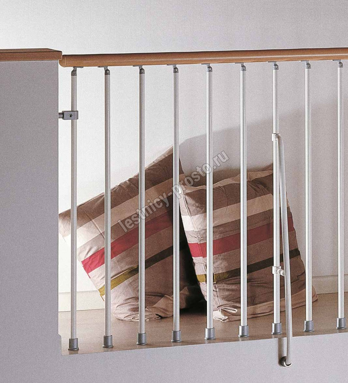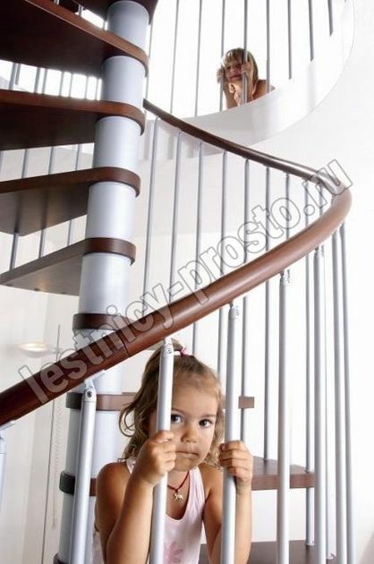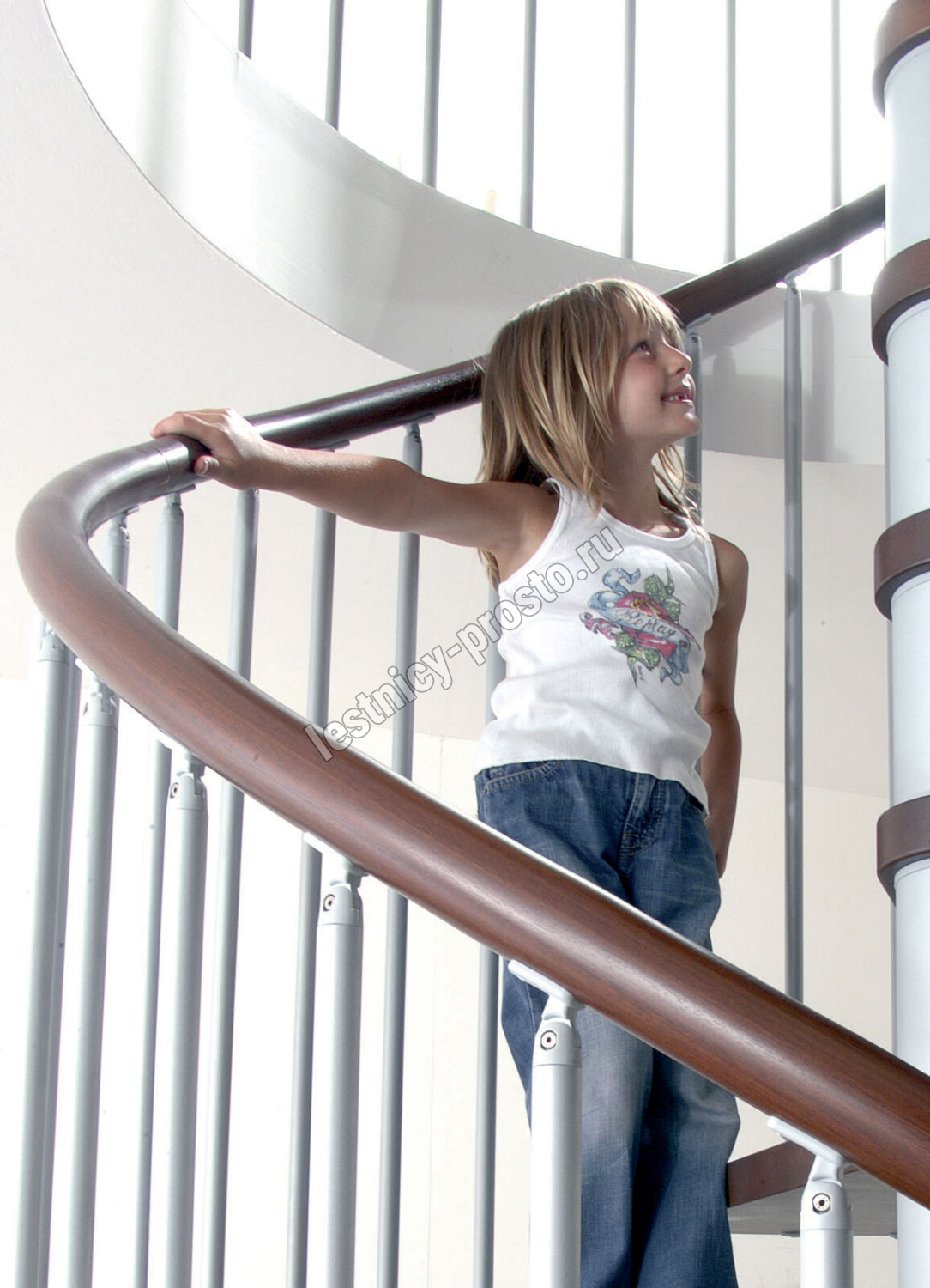 Площадка лестницы позволяет вмонтировать ее в проём потолка любой формы и размера. При монтаже лестницы, с помощью специальных пластиковых вставок, варьируется высота шага в пределах от 210 мм до 235 мм, за счёт чего общая высота лестницы может быть получена в пределах ;от 2530 мм до 3060 мм. С помощью дополнительных секций можно увеличить высоту базовой модели до 3770 мм. Клан создается путем сочетания цветов стали со светлыми (натуральными) или темными тонированными однотонными протекторами из бука. Поручни из ПВХ с эффектом дерева с алюминиевым сердечником выпускаются в светлом или темном исполнении, чтобы соответствовать оттенку протектора. Перила состоят из стальных балясин, окрашенных в черный (RAL 9017), белый (RAL 9010) или серый (RAL 9006). Концы черные для черной лестницы и серые для серой и белой лестниц.