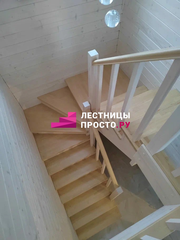 Г-образная лестница из сосны для частного дома ЛС-07/4